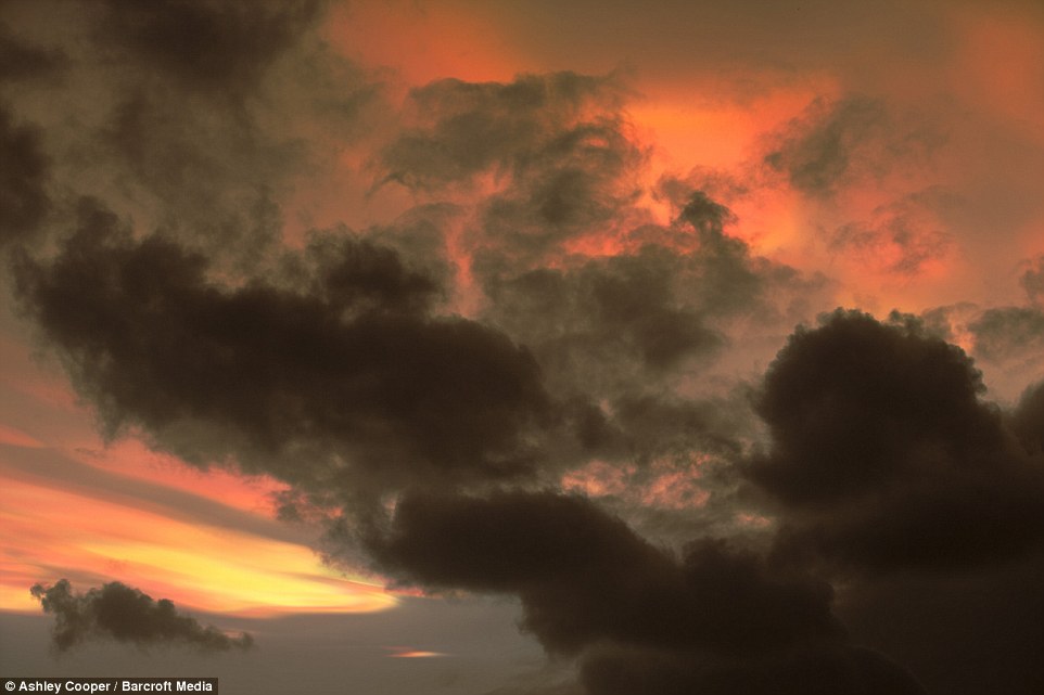 Vivid: Angry reds and oranges were captured later in the evening, while darker clouds added a touch of drama to the photograph