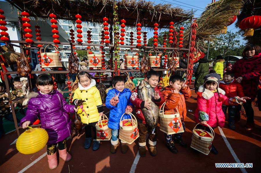 Children and parents have a group photo at the playground of Linping Happiness Kindergarten in Hangzhou, capital of east China's Zhejiang Province, on Jan. 19, 2016. [Photo: Xinhua/Xu Yu]