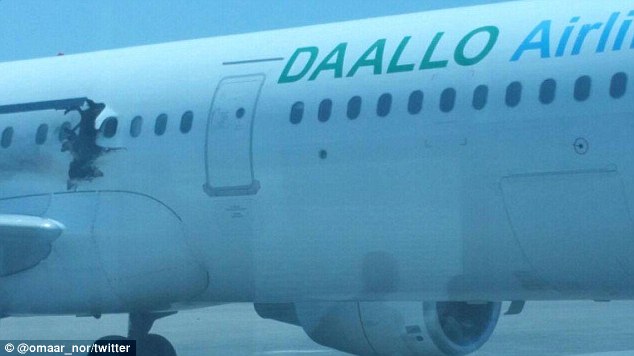 A explosion blew a hole in the side of the Airbus A321 just 15 minutes after it left Mogadishu in Somalia