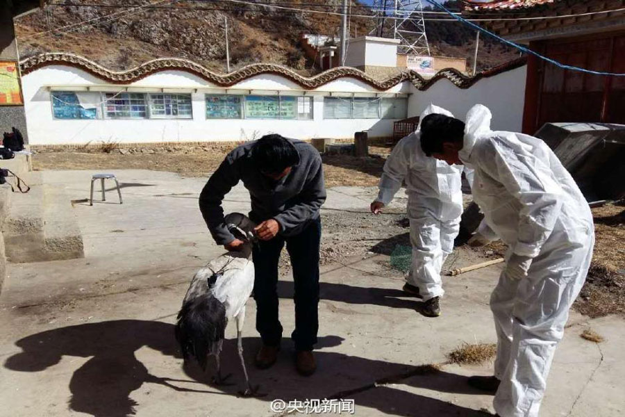 Two passers-by spotted a black-necked crane stuck in an ice hole in Southwest China’s Yunnan Province. Though it was -18℃, they jumped into the waist-high waters, eventually managing to free it. But the bird was close to death because of the freezing cold, so one of the men took off his cloths and held the crane against his body to give it warmth. The plan worked. A first-class protected species in China, the lucky crane has now recovered and has been released back into nature. [Photo: chinanews.com]