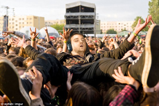 On top of the world: One of the users has superimposed his head onto the body of someone crowdsurfing