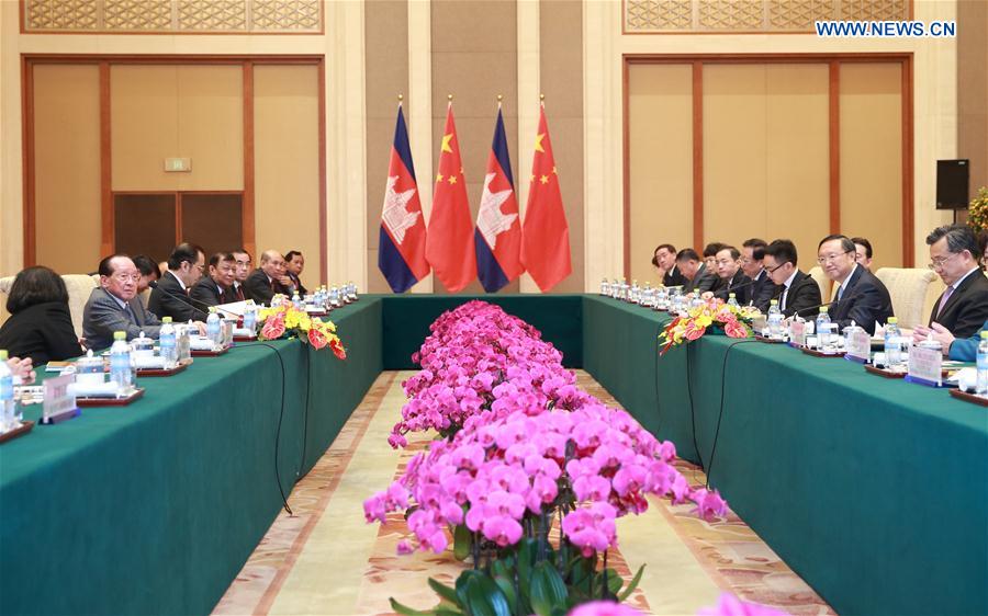 BEIJING, Feb. 4, 2016 -- Chinese State Councilor Yang Jiechi (2nd R) and Cambodian Deputy Prime Minister Hor Namhong (2nd L) co-chair the third meeting of the China-Cambodia Inter-Governmental Coordination Committee, in Beijing, capital of China, Feb. 4, 2016. (Xinhua/Ding Haitao)