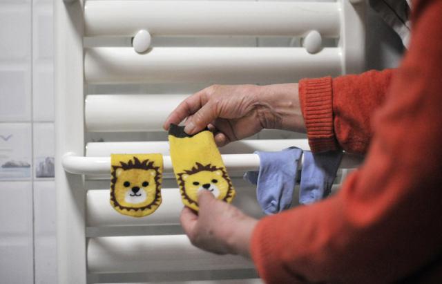 Yu's mother-in-law dries washed socks of her granddaughter on a heater on Feb. 9, 2016, the second day of Chinese Lunar New Year. The senior is used to drying the child's underwear on heaters in order to make them warm when the child wears them. (Photo/Yu Yang)
