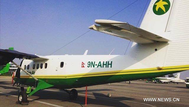 JOMSOM, Feb. 24, 2016 -- Undated file photo shows a Twin Otter plane 9N-AHH landing at an airport in Kathmandu, capital of Nepal. Search operation has begun for a missing aircraft of Tara Airlines in Nepal that was flying with 18 passengers on board. The Twin Otter aircraft was flying to Jomsom from Pokhara on Wednesday morning. It lost contact a few minutes after taking off from the airport at 7:47 AM local time. (Xinhua/Sunil Sharma)