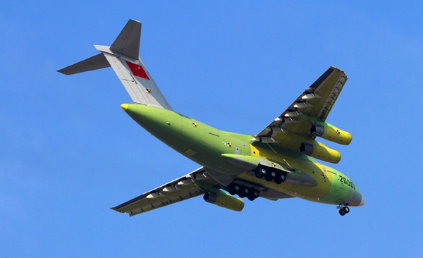 The first flight of the Y-20 took place in 2013, making China the fourth country in the world, following the U.S., Russia and Ukraine, to develop a 200-ton military cargo jet.