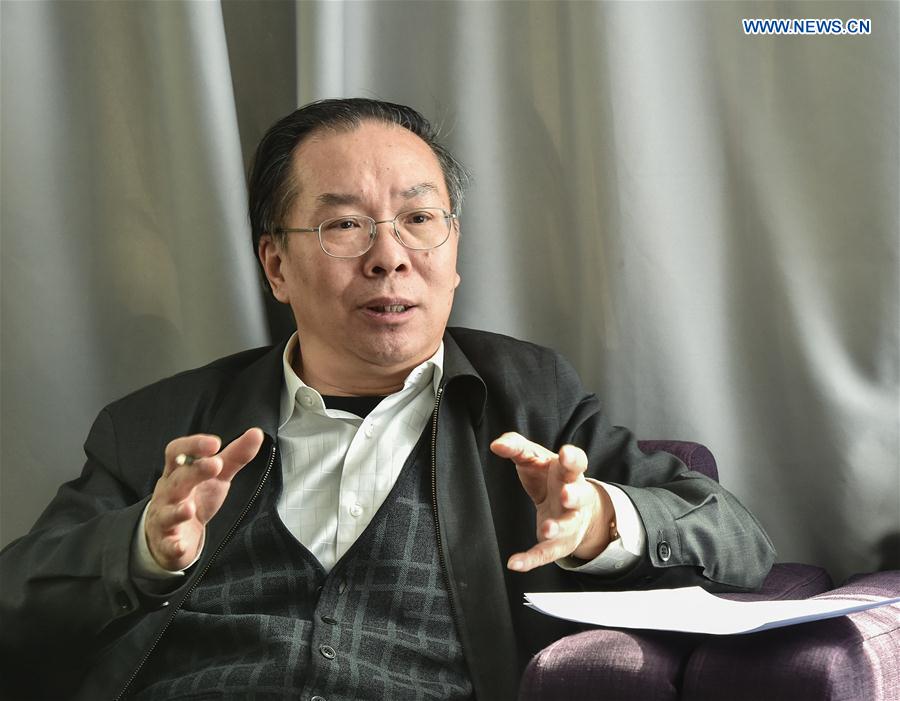 Wang Guoqing, newly-appointed spokesperson for the fourth session of the 12th Chinese People's Political Consultative Conference (CPPCC) National Committee, receives an interview of Xinhua News Agency on Feb. 24, 2016. Wang will debut as the spokesperson at the CPPCC press conference on March 2. (Xinhua/Li He)