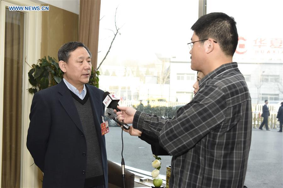 Wang Fuqiang (L), a member of the 12th National Committee of the Chinese People's Political Consultative Conference (CPPCC), receives an interview at a hotel housing attendees of the upcoming Fourth Session of the 12th CPPCC National Committee in Beijing, capital of China, March 2, 2016. (Xinhua/Chen Yichen)