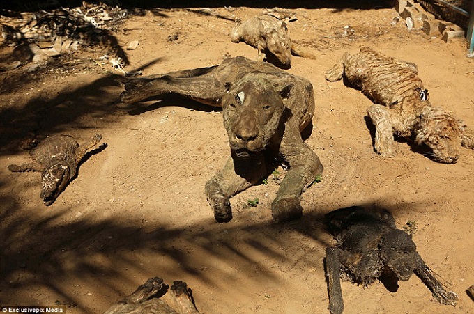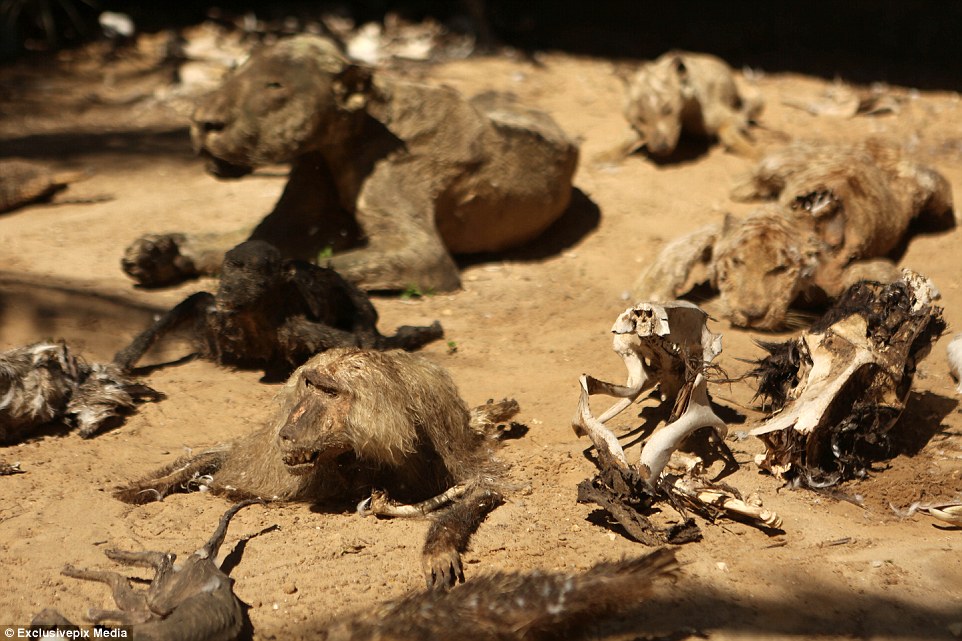 These horrifying pictures show mummified corpses of animals that starved to death in the Khan Younis zoo in the impoverished Gaza Strip.