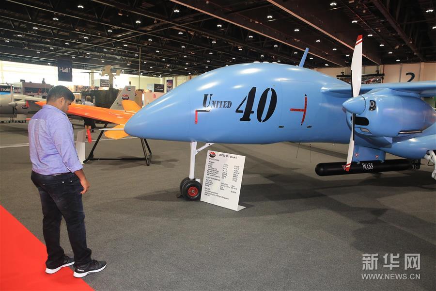 Photo taken on March 6, 2016 shows an unmanned aerial vehicle used by United Arab Emirates military at the second Unmanned Systems Exhibition & Conference in Abu Dhabi, United Arab Emirates. (Xinhua/An Jiang)