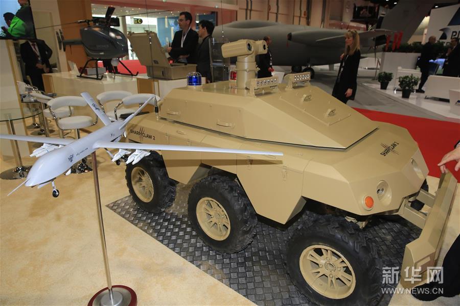 Photo taken on March 6, 2016 shows two unmanned devices from China North Industries Corporation on display at the second Unmanned Systems Exhibition & Conference in Abu Dhabi, United Arab Emirates. (Xinhua/An Jiang)
