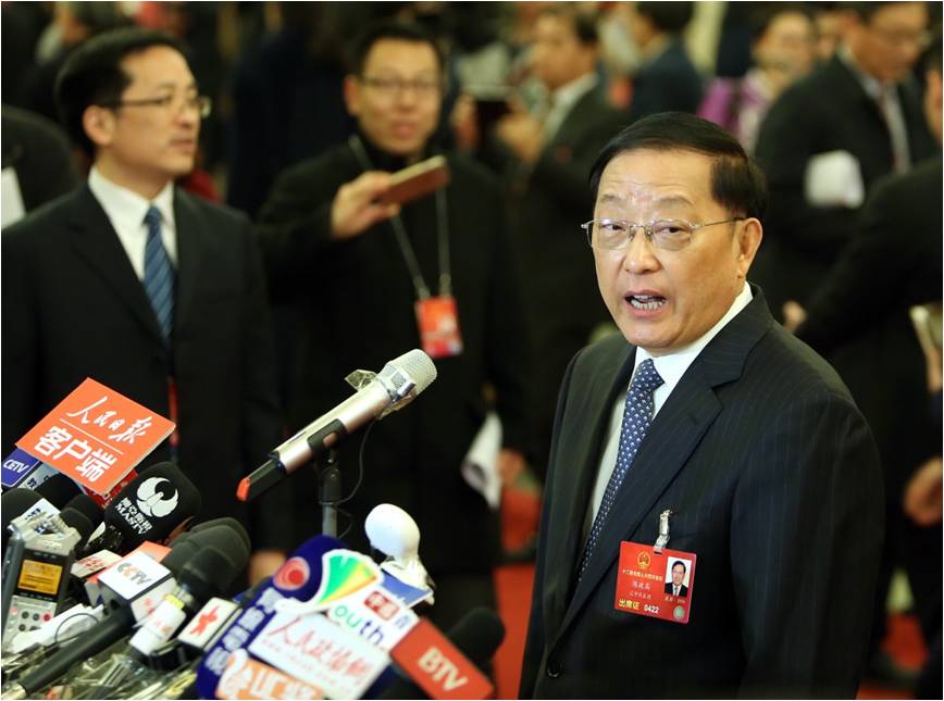 Chen Zhenggao, Minister of Housing and Urban-rural Development, gives an interview to media on Saturday before the fourth session of the 12th National People’s Congress kicked off at the Great Hall of People. (Photo: Shi Jiamin from People’s Daily)
