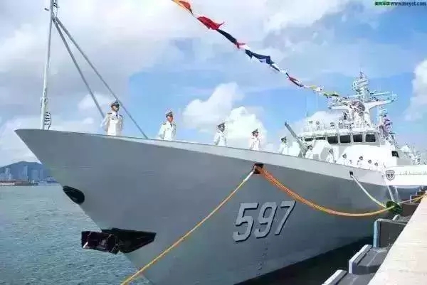 Qinzhou guided-missile frigate, with the hull number of 597, was commissioned to the People's Liberation Army Hong Kong Garrison on July 1, 2013.