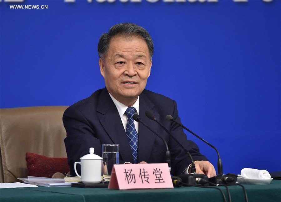 Chinese Minister of Transport Yang Chuantang attends a press conference on reform and development of taxi on the sidelines of the fourth session of the 12th National People's Congress in Beijing, capital of China, March 14, 2016. (Xinhua/Li Xin)