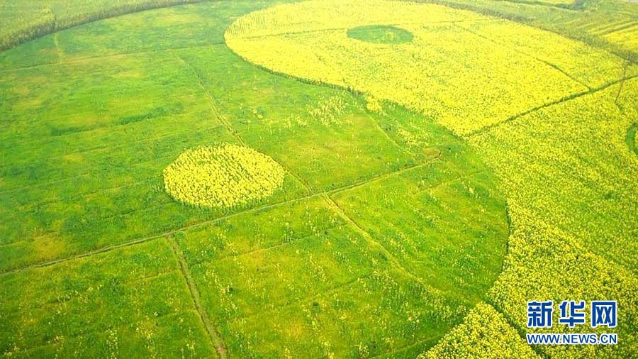 Drone photos show rapeseed flowers terrace in the shape of a Taiji symbol (2)