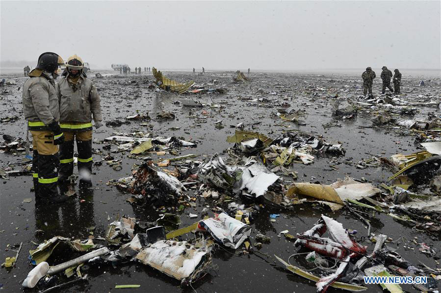 Rescuers work at the crash site of the Boeing 737-800 Flight FZ981 operated by Dubai-based budget carrier Flydubai, at the airport of Rostov-On-Don, Russia, on March 19, 2016. [Photo: Xinhua/RIA Novosti]