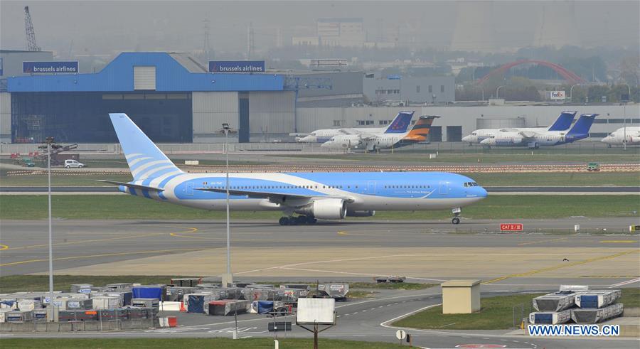 BEIJING, March 22, 2016 -- File photo taken on April 20, 2010 shows a passenger plane on a runway at Brussels Internatinal Airport in Brussels, Belgium. Explosions were heard at Zaventem Airport in Brussels shortly before 8 a.m. March 22, 2016 local time, where several people were injured, Belgium's RTBF quoted witnesses as reporting. (Xinhua/Wu Wei)