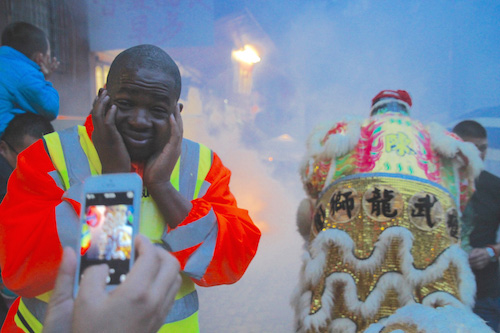The dragon dance team is accompanied by security during their performance at the Chinese New Year celebration event in Johannesburg, South Africa. (Picture: People’s Daily Online / Zhang Jiexian)