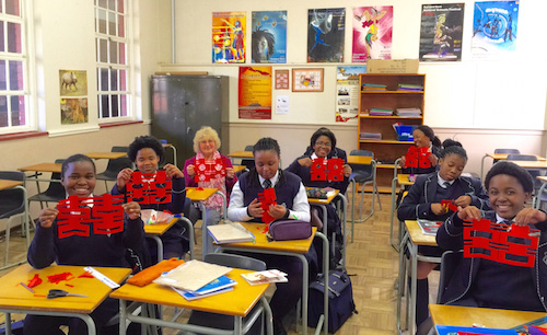“Learners are showing great enthusiasm in Chinese classes,” says Evelyn Song Peters, the course coordinator who is also teaching at Pretoria High School for Girls. She says “some learners voluntarily teach, or more likely show off, Chinese to classmates during school breaks”. Peters even has three teachers in her Chinese class.