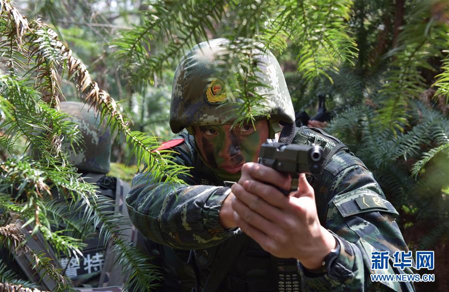 Special combat soldiers from the second detachment of Anhui People's Armed Police Corps conduct wading search training in a forest in Chaohu on March 23, 2016. On that day, the Hell Week code-named 'Hunter' entered the third day. The soldiers will face more than 30 training courses including long-range raid, jungle search, swimming in battle gear, field survival, and battlefield self-help. (Xu wei/Xinhua News Agency)