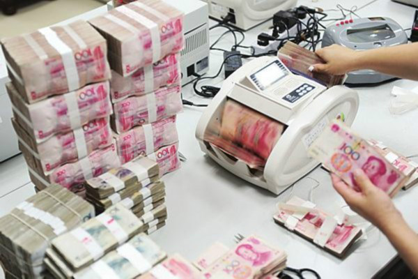 Piles of RMB are being calculated in a financial institution. [File photo: cankaoxiaoxi.com ]