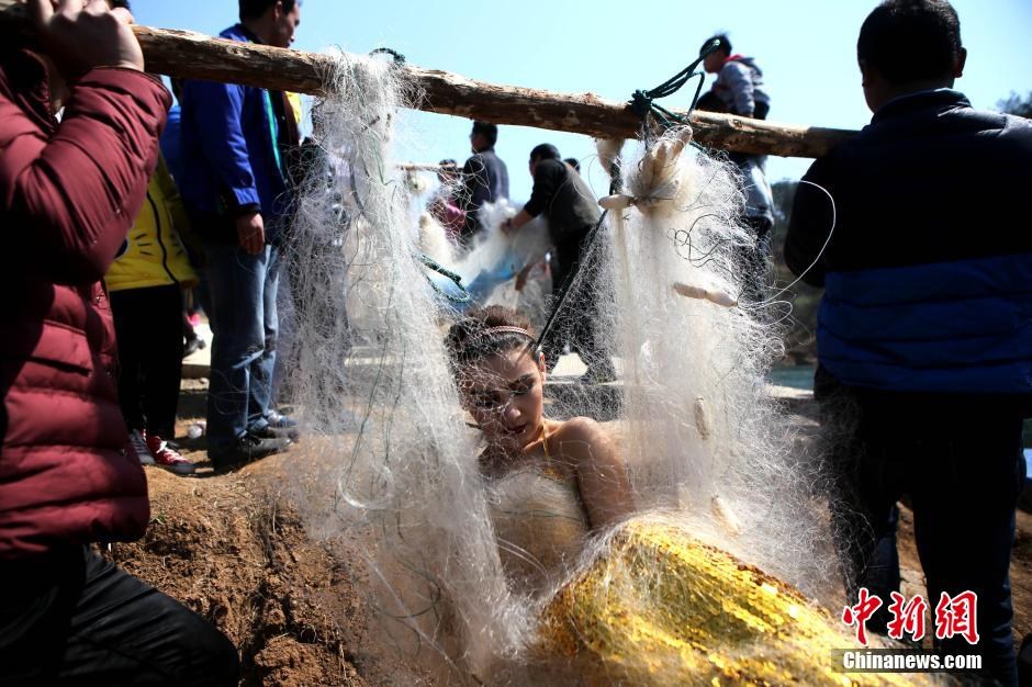 College students dressed in mermaid costumes to call for fishing halt (2)