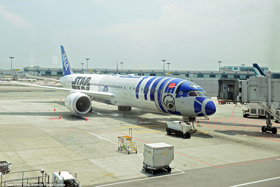 Japanese carrier All Nippon Airways painted three planes with Star Wars liveries, including this R2-D2 theme, to celebrate the latest film.