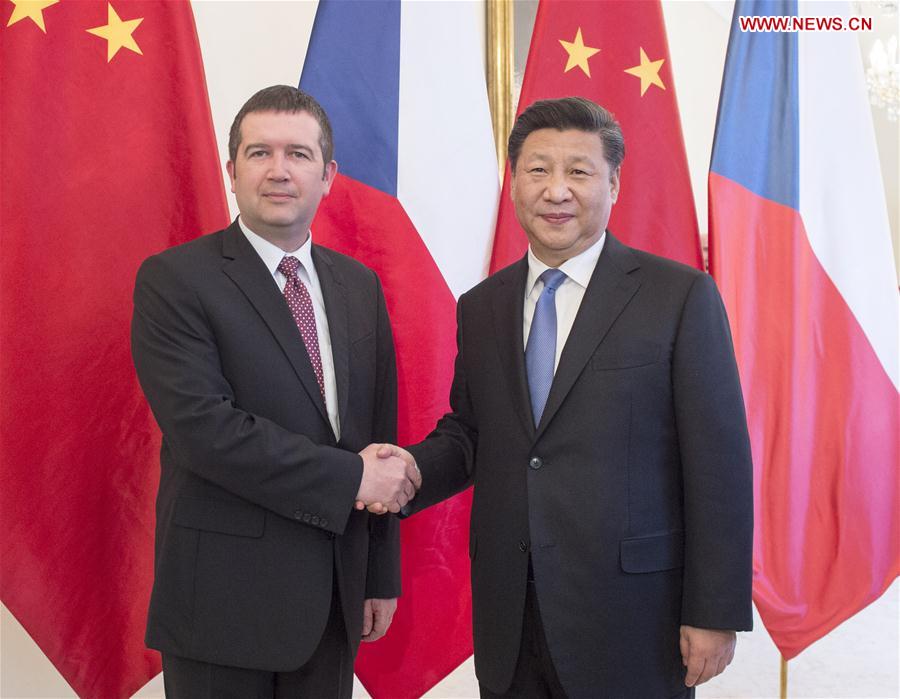 Chinese President Xi Jinping (R) meets with Jan Hamacek, chairman of the Chamber of Deputies of the Czech Parliament, in Prague, the Czech Republic, March 29, 2016. (Xinhua/Wang Ye)