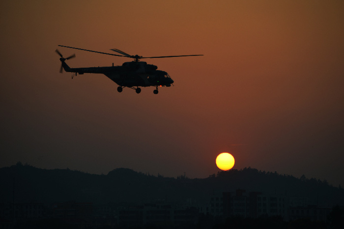 A Mi-171 transport helicopter is pictured during flight training. Multi-type helicopters with an Army aviation regiment of the 31st Group Army under the PLA Eastern Theater Command carried out round-the-clock flight training on March 28, 2016 with the purpose of honing troops' all-weather operational capabilities. (Chinamil/Xiao Qingming)