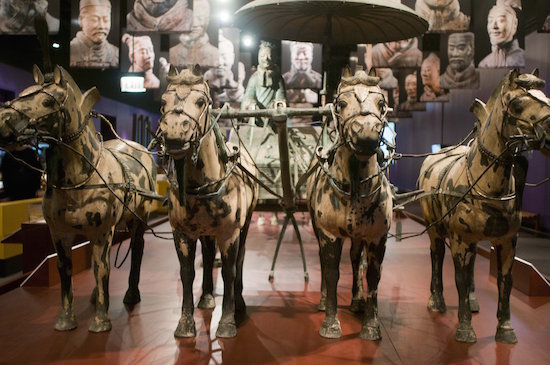 The largest terracotta warrior exhibition held in North America in recent years showcases more than 170 objects including bronze artefacts, weaponry and 10 famed terracotta figures in Chicago. Picture: XINHUA/HE XIANFENG