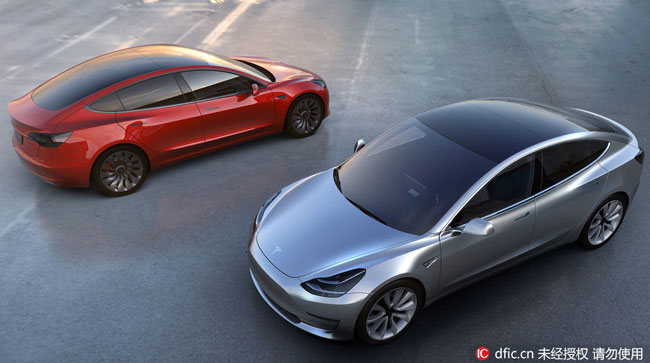US American electric car manufacturer Tesla Motors shows the new Tesla Model 3 on April 1, 2016. [Photo: Imagine China]