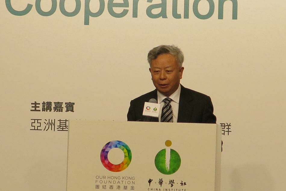 The President of the Asian Infrastructure Investment Bank Jin Liqun gives a public talk in Hong Kong on April 7, 2016. [Photo: CRIENGLISH.com/Li Jing]