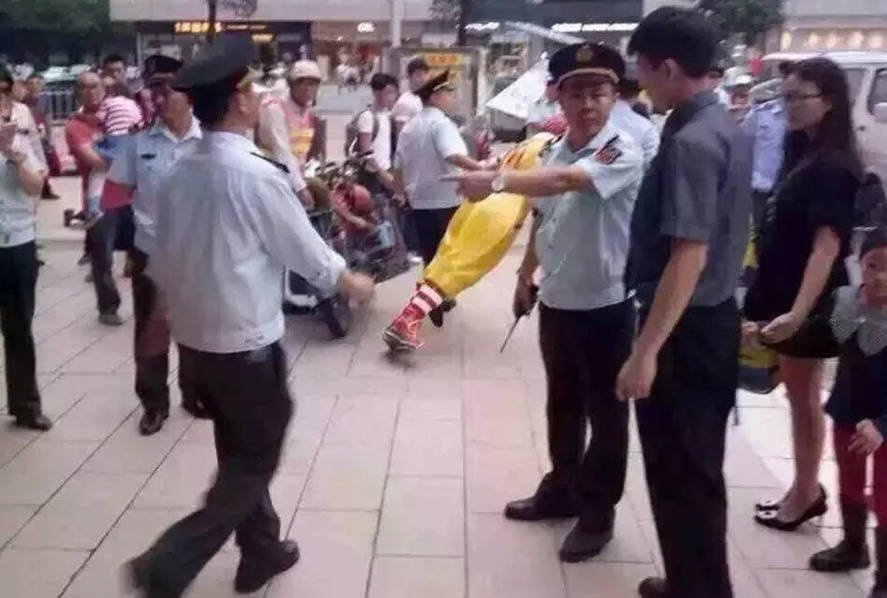 Ronald McDonald 'arrested' by Guangzhou chengguan officers (4)
