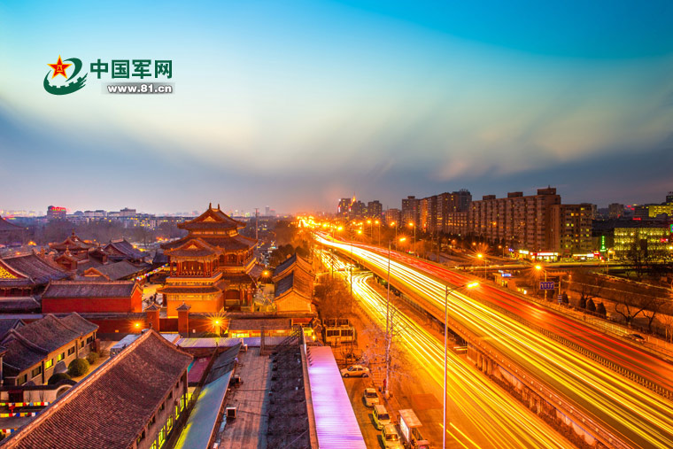 Evening lights are lit in Beijing. (Photo/www.81.cn)
