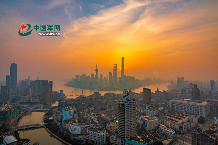 Sunrise in Lujiazui Finance and Trade Zone, Shanghai. (Photo/www.81.cn)