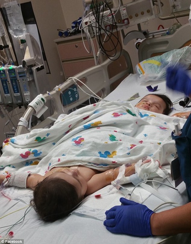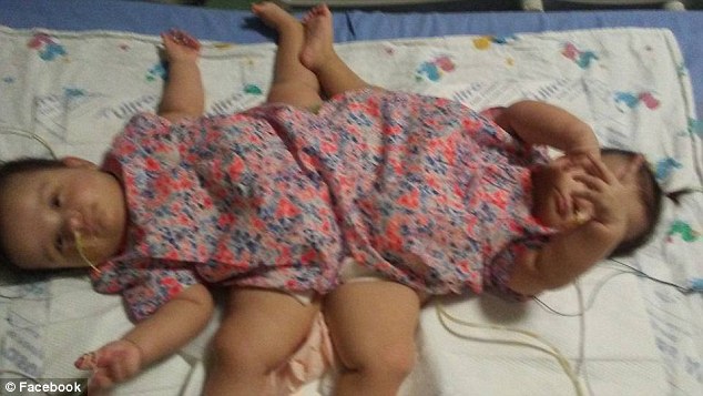 Undergoing surgery: Ximena and Scarlett Hernandez-Torres share a colon and bladders that will be reconstructed. The conjoined twins headed in for surgery in Corpus Christi on Tuesday morning
