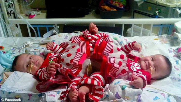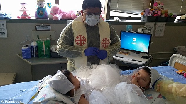 Ceremony: The girls were baptized Saturday at the hospital in preparation for the surgery, as per their parents wishes