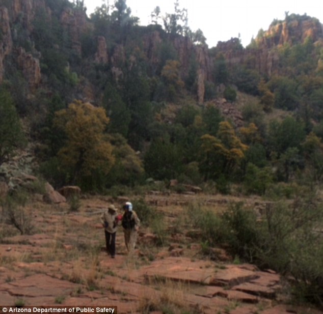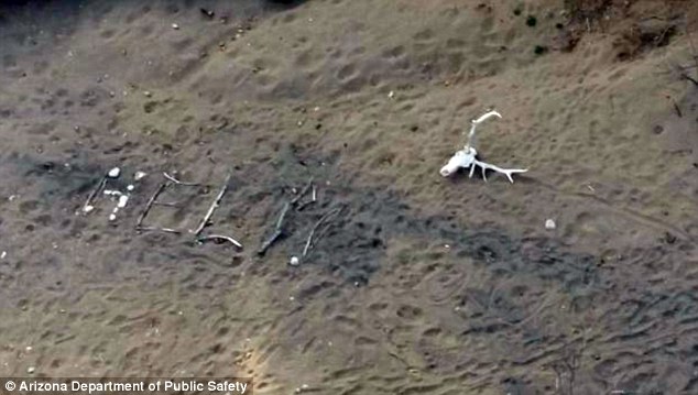 Authorities eventually came across her dog on April 9 before an aerial search by a DPS flight crew spotted a 'HELP' signal made of sticks and rocks on the ground.