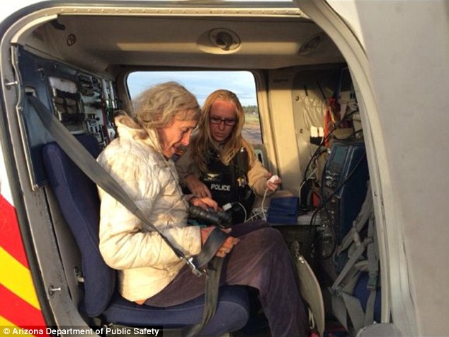 Rodgers pictured before a helicopter airlifts her to a local hospital for treatment. She went missing on March 31 as she headed to visit her grandchildren in Phoenix