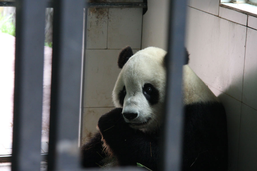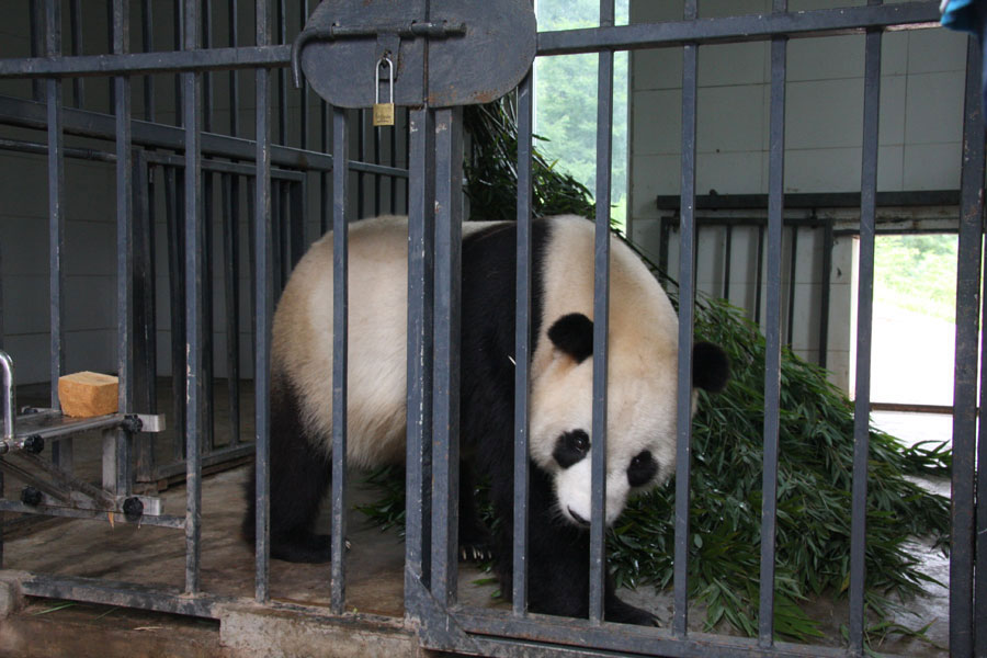 Photo taken on June 23, 2015 shows 9 years old "Tai Shan" who was born at the National Zoo in Washington D.C. on July 9, 2005, in Dujiangyan Base of CCRCGP. He returned to China in 2010 when he was 4 years old. [Photo: CRIENGLISH.com/Liu Ranran]