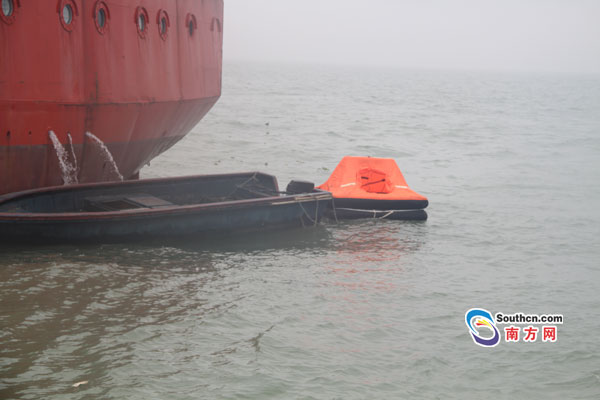 The patrol ship helped the foreigners off the life raft and onto Donggui No. 2. The maritime safety authorities also required that the sampan and life raft left behind at the site where the foreigners were rescued be tied to the stern of Donggui No. 2 in order to prevent other vessels from running into them.