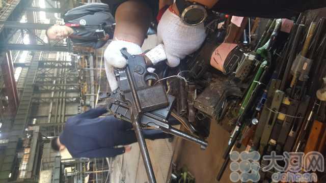 Police officers throw the 1,262 guns they confiscated into a steel furnace in Jiyuan, central China's Henan province on Monday. Most of the guns were retired guns from certain organizations.