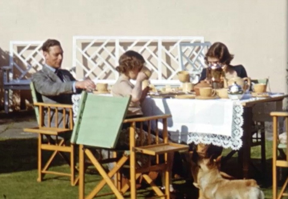 Alfresco: Princess Elizabeth enjoys a tea party with her mother, father and sister Margaret in the sunken garden at Windsor. Today she still loves dining outside — even if it’s not sunny