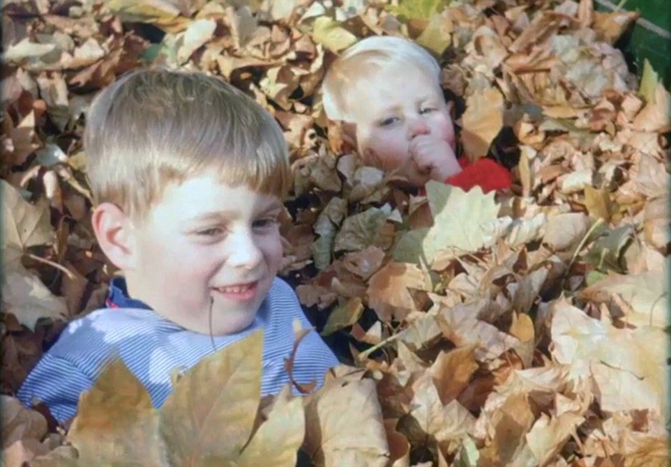 Barrow boys: They’re supposed to be helping to clear leaves at Buckingham Palace, but as these mid-Sixties pictures show, Andrew, left, and Edward hid in the wheelbarrow, with Edward, as Charles says, ‘busily sucking his thumb’. The Queen recalls: ‘That’s rather good that. We were allowed to rake the leaves.’