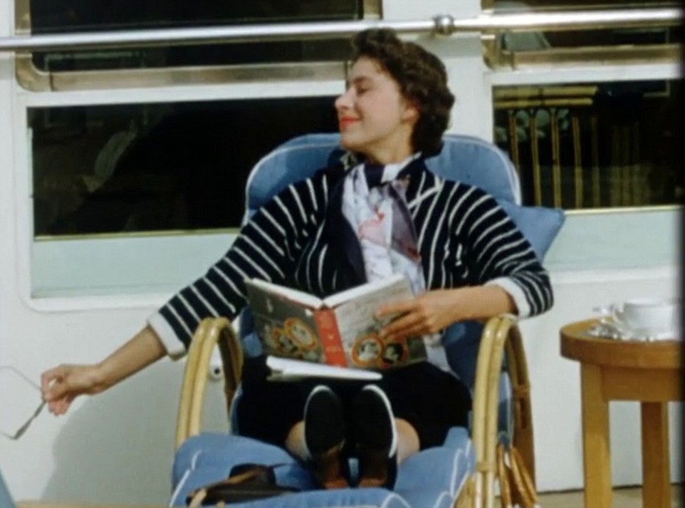 Also looking like a Hollywood star is Princess Margaret (pictured) on the Royal Yacht Britannia