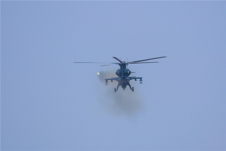A WZ-10 attack helicopter fires a missile during live-fire training on April 22, 2016. An Army aviation brigade with the PLA 1st Group Army conducted round-the-clock live-fire training in the north of east China’s Jiangsu Province on April 22, 2016. (ChinaMil/Wang Jiayin)