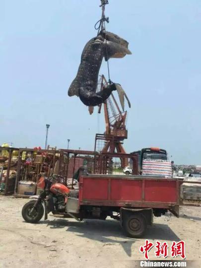 A dead whale shark is sold at a Beihai port on May 7. (Photo/CNS)