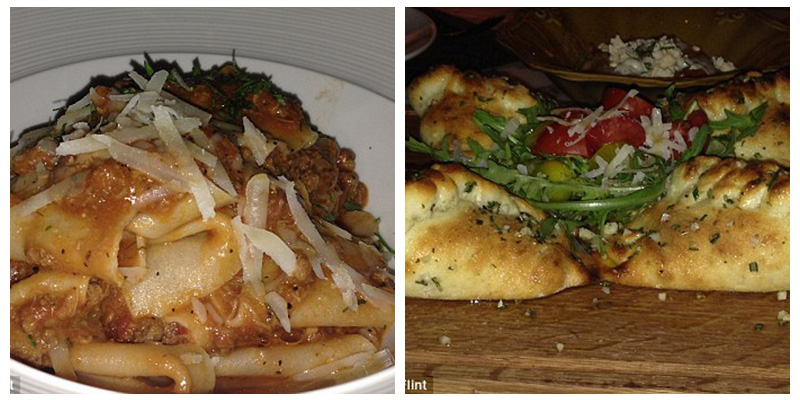 Italian cuisine at The Temple House Chengdu's Tivano restaurant (left) and a pizza (right) was created in a wood-fired oven