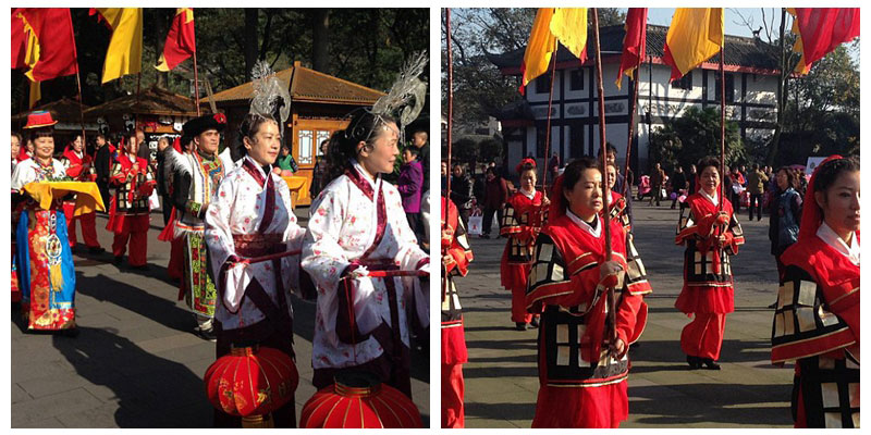 Rich with culture: A Sunday parade saw locals dressed in traditional costume and walking towards the Dujiangyan Irrigation Project