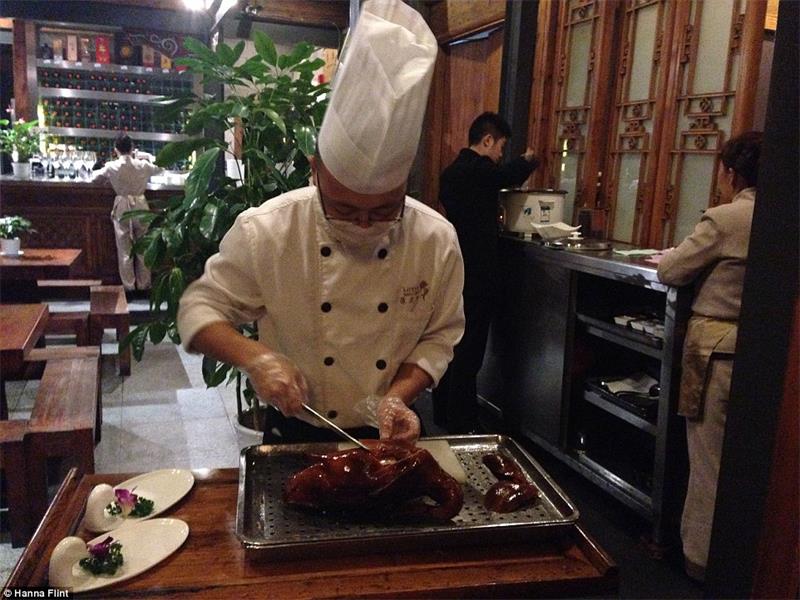 Hong Kong style: A chef prepares the Hoisin duck at one of the restaurants in Wide & Narrow Alley