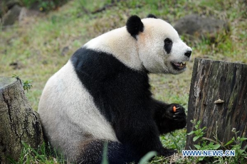 Giant panda Tuan Tuan eats food at the Taipei Zoo, southeast China's Taiwan, Jan. 23, 2011. A celebration was held in Taipei Zoo Sunday to mark the second anniversary of receiving two giant pandas Tuan Tuan and Yuan Yuan from the Chinese mainland. The Chinese mainland sent Tuan Tuan and Yuan Yuan (together meaning "reunion"), as a gift to Taiwan in December 2008. [Photo: xinhua]